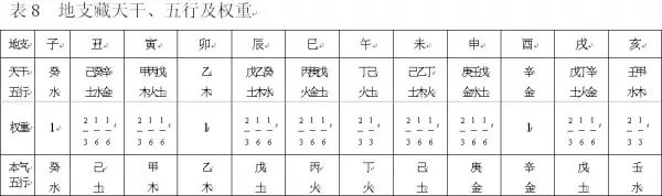 (2)依表6列出天干、依表8列出地支五行及其权重。